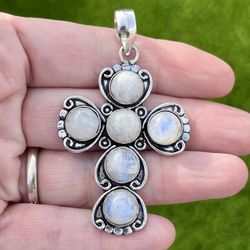 Large Rainbow Moonstone Silver 2.4” Cross Pendant#46329$40Sun City, AZ