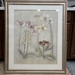 Blum Orchid Wall Art Decor Flower Painting Signed Large Golden Frame Hangable Vintage $40Goodyear, AZ