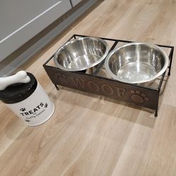 2 large dog bowls , water bowl, dog food and leash with harness $25Sun City, AZ