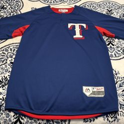 Texas Rangers Majestic Royal/Red Authentic Collection On-Field 3/4-Sleeve Batting Practice Jersey$100Sun City, AZ