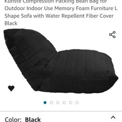 Compression Packing Bean Bag for Outdoor Indoor Use Memory Foam Furniture L Shape Sofa with Water Repellent Fiber Cover Black
