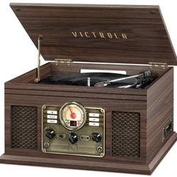 Nostalgic 6-in-1 Bluetooth Record Player & Multimedia Center with Built-in Speakers - 3-Speed Turntable, CD & Cassette Player, AM/FM Radio | Wireless $75Glendale, AZ