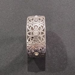 BRIGHTON Silver Tone Cutout Scrolls & Crystals Magnetic Hinged Cuff Bracelet