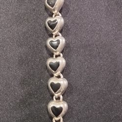 Taxco Mexico, TT-06, Sterling Silver 925, Hearts Bracelet, 7 5/8"