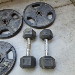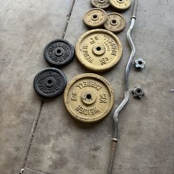 Vintage/Modern Plates, Dumbbell Handles & Curl Bar$1Tolleson, AZ