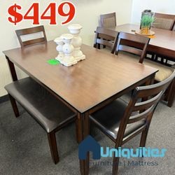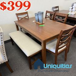 6 Piece Dining Set Includes Dining Table, Chairs And Bench Brand New On Sale Only $389.00$389Peoria, AZ