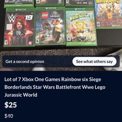 Lot of 7 Xbox One Games Rainbow six Siege Borderlands Star Wars Battlefront Wwe Lego Jurassic World$25Sun City, AZ