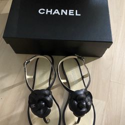 Black Leather Camellia Thong Flat Size 36 Sandals$400Phoenix, AZ
