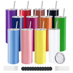 12 Pack Stainless Steel Skinny Tumblers 20oz - Bulk Straight Double Wall Vacuum Insulated Tumbler $45Tolleson, AZ