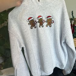 New Adult Medium Embroidered Gingerbread Men and Cookie Recipe on the Back Hoodie Jacket Grey$20Buckeye, AZ