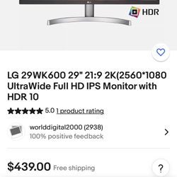 Lg Widescreen Gaming Monitor Great Condition 75hz$350Peoria, AZ