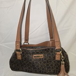 Calvin Klein Logo Top Handle Satchel Bag Brown Tan Handbag Purse authentic $50Peoria, AZ