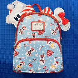 Loungefly Disney Mickey and Minnie Mouse Snowman Christmas Mini Backpack and Matching Ears - NWTs $85Sun City, AZ