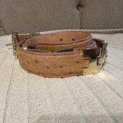 Mens Western Belt Cognac Ostrich Versace Quill Skin Leather Gold Links Size 34$80Youngtown, AZ