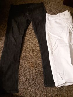 1 PAIR OF LEVIS SIZE 34×30 MENS CHARCOAL 501s & 1 PAIR OF LEVIS SIZE 32 HIP WAIST WOMENS WHITE CAPRIS.$25Peoria, AZ