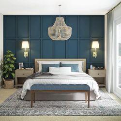 SIMPLIHOME Waverly 48 inch Wide Rectangle Ottoman Bench Denim Blue Tufted Footrest Stool, Linen Look Polyester Fabric for Living Room, Bedroom, Tradit$120Buckeye, AZ