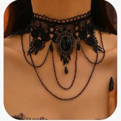 Gothic Black Lace Choker Necklace Crystal Pendant Necklace Tassels Chain Necklace Halloween Necklace for Women$4Peoria, AZ