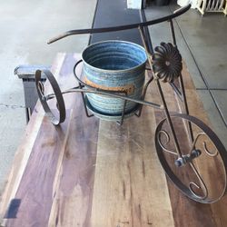 26” Long Rustic Wrought Iron Tricycle Plant Stand & 7” Ceramic Planter With Attached Sauce.$90Sun City, AZ