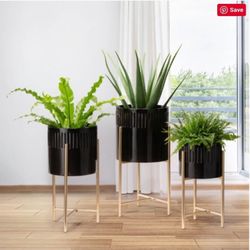 New Glitzhome Modern Glossy Black Metal Plant Stands, Set of 3 $80Phoenix, AZ