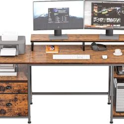 Furologee 61" Desk with Fabric File Drawer, Reversible Computer Desk with Shelves and Drawer, Industrial Writing Desk with Monitor Stand, Long Study T$30Phoenix, AZ