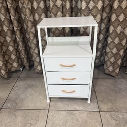 White Nightstand With 3 Drawers And 2-Tier Shelf, Small Night Stand End Table Side Furniture, Fabric Storage Organizer For Bedroom, Closet, Hallway, N$45Tolleson, AZ