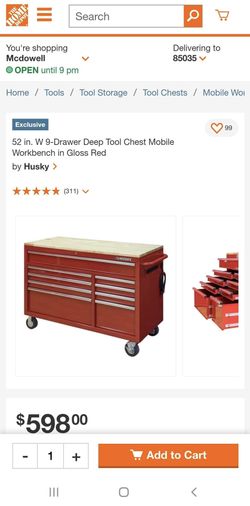 Red Husky 61 Inch Tool Box Work Bench Red Gloss$898Phoenix, AZ