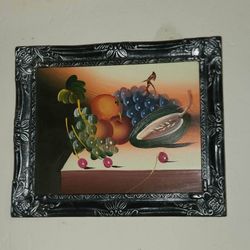VINTAGE ORNATE BLACK SILVER ANTIQUED FRAME FRUIT STILL LIFE PAINTING PICTURE ART DECOR$30San Tan Valley, AZ