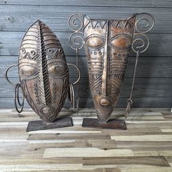 African Tribal Mask Metal Sculptures On Stand Steel Art Décor Suggested Resell $250 Pair Set of 2$150Chandler, AZ