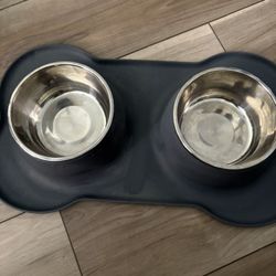 stainless steel dog food bowl set with a non-slip silicone mat. New$12Gilbert, AZ