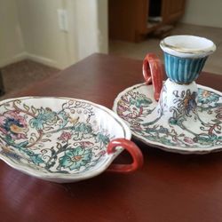X2 VINTAGE CHINESE PORCELAIN CLOISONNE HAND PAINTED FLORAL FLOWER CHAMBER STICK CANDLESTICK CANDLE HOLDER DISH SET$20San Tan Valley, AZ