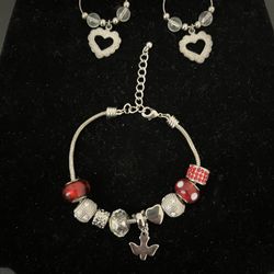 Red & White Crystal-Glass Bead Bracelet with Dove Charm- New$5Gilbert, AZ