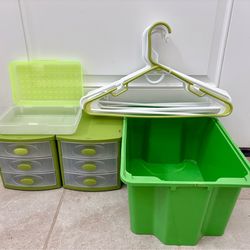 Green Plastic Storage Containers& Hangers Green Plastic Storage Containers add color coded organization for closets, garages, or playrooms, with stac$12Gilbert, AZ