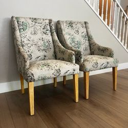 TWO Oversized Cost Plus World Market Greige & Green Accent Armchair With Natural Wood Legs$180Gilbert, AZ