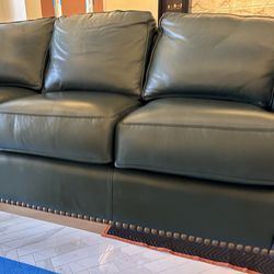 Emerald/Forest Green Top-Grain Leather Sofa with Brass Nailhead Trim$350Tempe, AZ