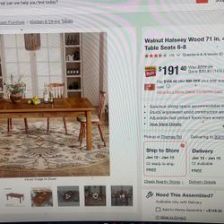 71 Inch Walnut Halsey Wood Table 6-8$160Maricopa, AZ