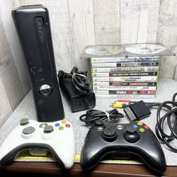 Xbox 360 Slim Black Console w/ 2 Controllers, Power Supply/AV Cable & 11 Video games -Tested-$140Phoenix, AZ