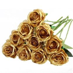 Nubry Artificial Silk Rose Flower Bouquet Lifelike Fake Rose for Wedding Home Party Decoration Event Gift 10pcs (Gold)$15Phoenix, AZ