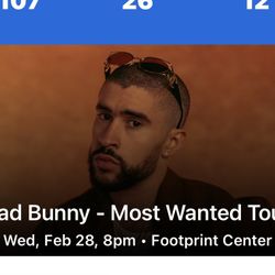 Bad Bunny - Most Wanted Tour 2/28$500Phoenix, AZ