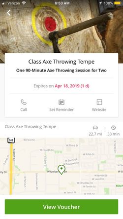 Groupon for Axe Throwing Class in Tempe, AZ$20Phoenix, AZ
