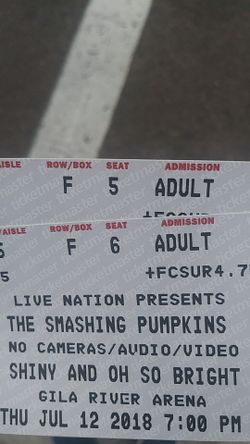 Smashing Pumpkins 2 lowee level sec 115 row f $65 ea. Meet at venue$65Laveen Village, AZ
