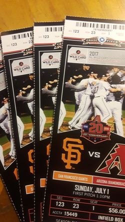 Four lower level infield box. Sec 123 row 23 . Sunday 1:10 pm. $50 each$50Laveen Village, AZ