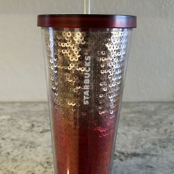 Starbucks Red Ombré Sequin Tumbler Iced Coffee Cup Tea With Straw And Lid 24 Oz$15Phoenix, AZ