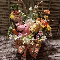 Ht-14in Width-13in HANDMADE Artificial Bunny Bait Wicker Basket Arrangement $20Mesa, AZ