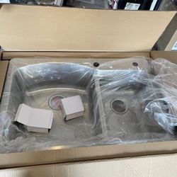 Glacier Bay Pro 33 In. Drop-In / Under Mount Double Bowl 18 Gauge Stainless Steel Kitchen Sink With Stainers $100Chandler, AZ