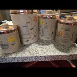 Vintage Pink Metal Kitchen Canisters Set Copper Lids$40Mesa, AZ