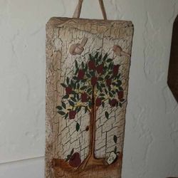 VINTAGE HAND PAINTED APPLE TREE STONE TILE PLAQUE PICTURE ART DECOR $15San Tan Valley, AZ