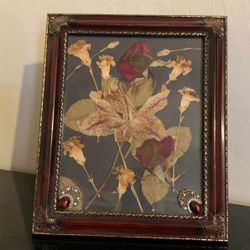 VINTAGE ORNATE BURGUNDY GOLD ANTIQUED FRAMED VICTORIAN PRESSED FLOWER JEWELRY EMBELLISHED PICTURE ART DECOR DISPLAY$30San Tan Valley, AZ