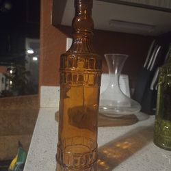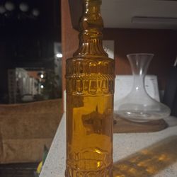 decorative Amber glass bottle with a raised, ornate pattern and a cork stopper. $8Mesa, AZ