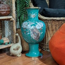 Vintage 19.5" Korean Mother of Pearl Brass Vase - Teal Peacock$135Peoria, AZ