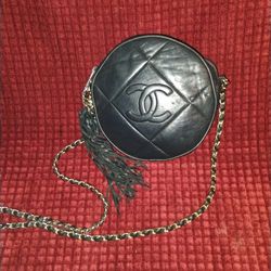 This item is a vintage Chanel quilted round crossbody bag with a tassel detail, typically made from lambskin leather in black with gold-tone$950Phoenix, AZ